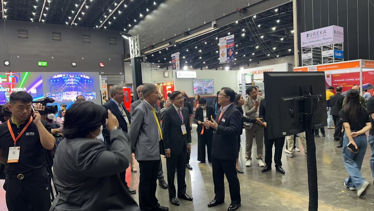 展會現場,臨工智科展臺吸引了大量參觀者駐足咨詢。公司代表與來自世界各地的客戶、合作伙伴深入交流,展示了產品的先進技術和應用案例,展現了公司強大的技術研發實力和服務能力。